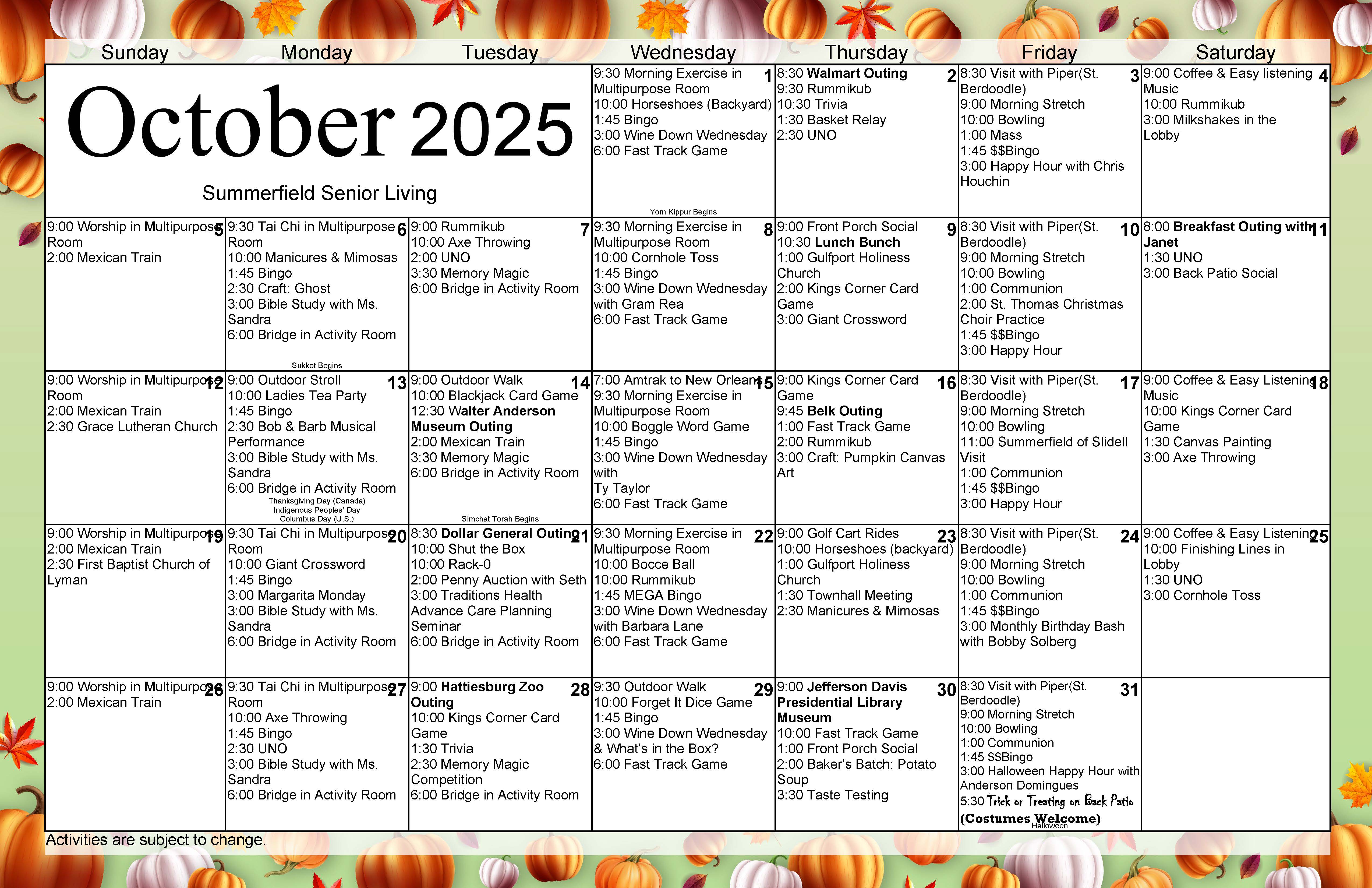 The month of October is filled with spooky Fall activities including events for Resident's families.